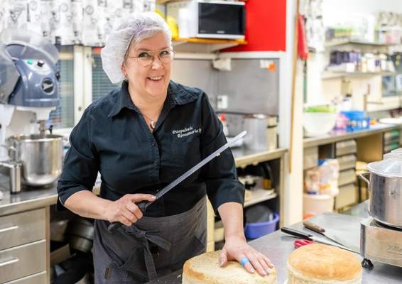 Niihin aikoihin sattuikin olemaan niin, että pitopalvelulle oli tilausta ja koska kokemusta alalta jo löytyi, niin se vaikutti selvältä valinnalta. Mieheni Jari tuli myös mukaan, koska hän oli koulutukseltaan leipuri-kondiittori, vaikka tekikin töitä myös Outokummulle vuoteen 2008 saakka.