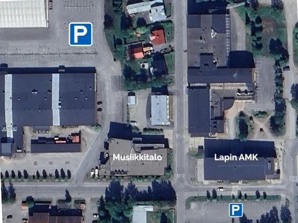Pysäköintitilaa löytyy Lapin Ammattikorkeakoulun Minerva-kampusta vastapäätä ja Ammattiopisto Lappian Musiikkitalon takana olevalla isolla parkkipaikalla.