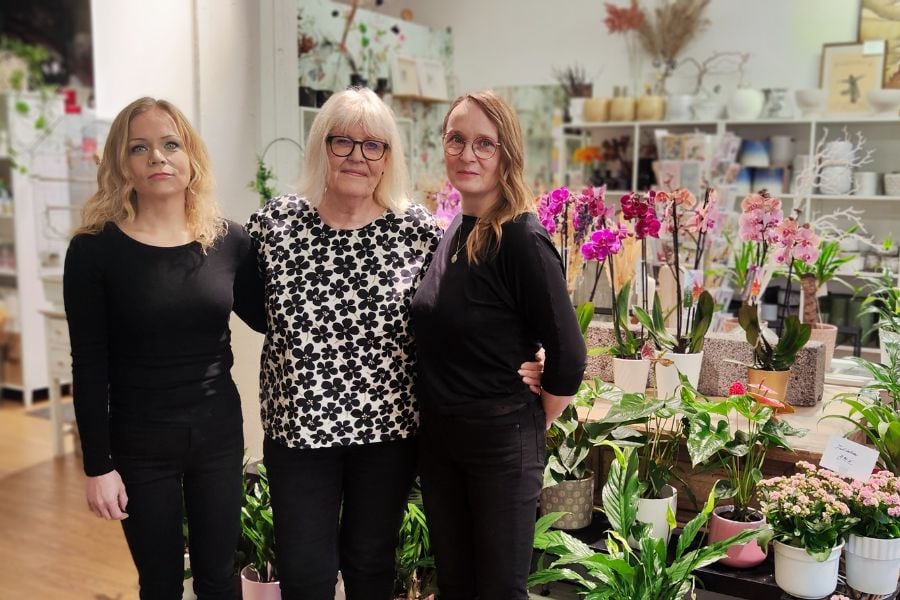 – “Nina soitti ja mainitsi ohimennen, että Torniossa olisi kukkakauppa myynnissä. Hän kysäisi, että alkaisinko yhtiökumppaniksi, sillä yhdessä olisimme vahvempia. Minä totesin, että Eihän sole ko alama”, Mona kertoo nauraen. – ”Ajattelin, että ainahan voi kokeilla. Ei siinä voi menettää muuta kuin korkeintaan rahaa.”